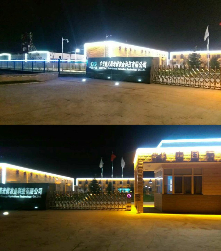 簡介—— 中節(jié)能大荔光伏農(nóng)業(yè)科技有限公司廠區(qū)亮化項(xiàng)目,是我們陜西蘭光照明2015年承接的亮化工程。公司設(shè)計(jì)師根據(jù)廠家要求簡單實(shí)用的特點(diǎn),整個廠區(qū)的設(shè)計(jì)全部采用線條燈和輪廓燈,將整個廠區(qū)的廠房、大門、廠區(qū)道路、辦公樓以輪廓勾勒的形式展現(xiàn)出來,照亮整個廠區(qū),達(dá)到客戶廠區(qū)樓宇亮化需求。